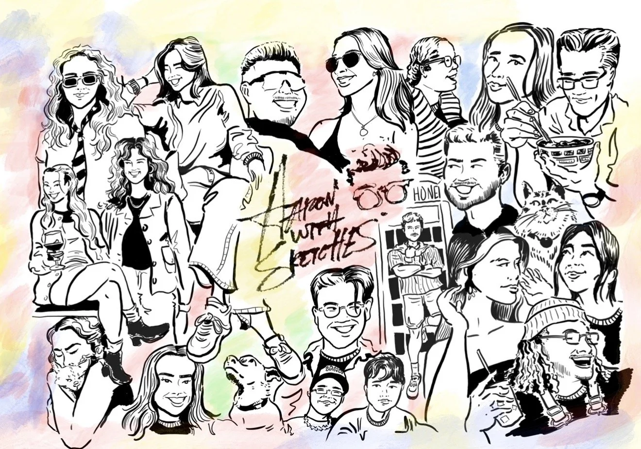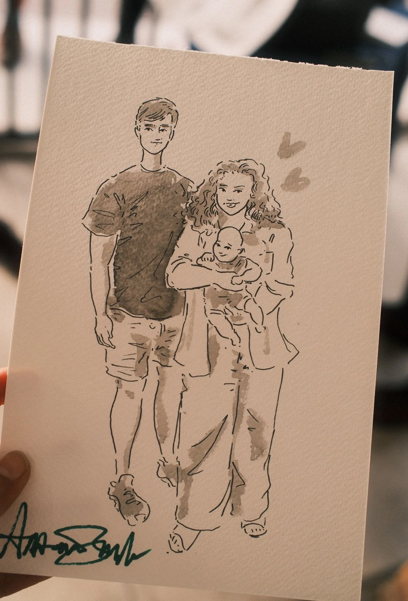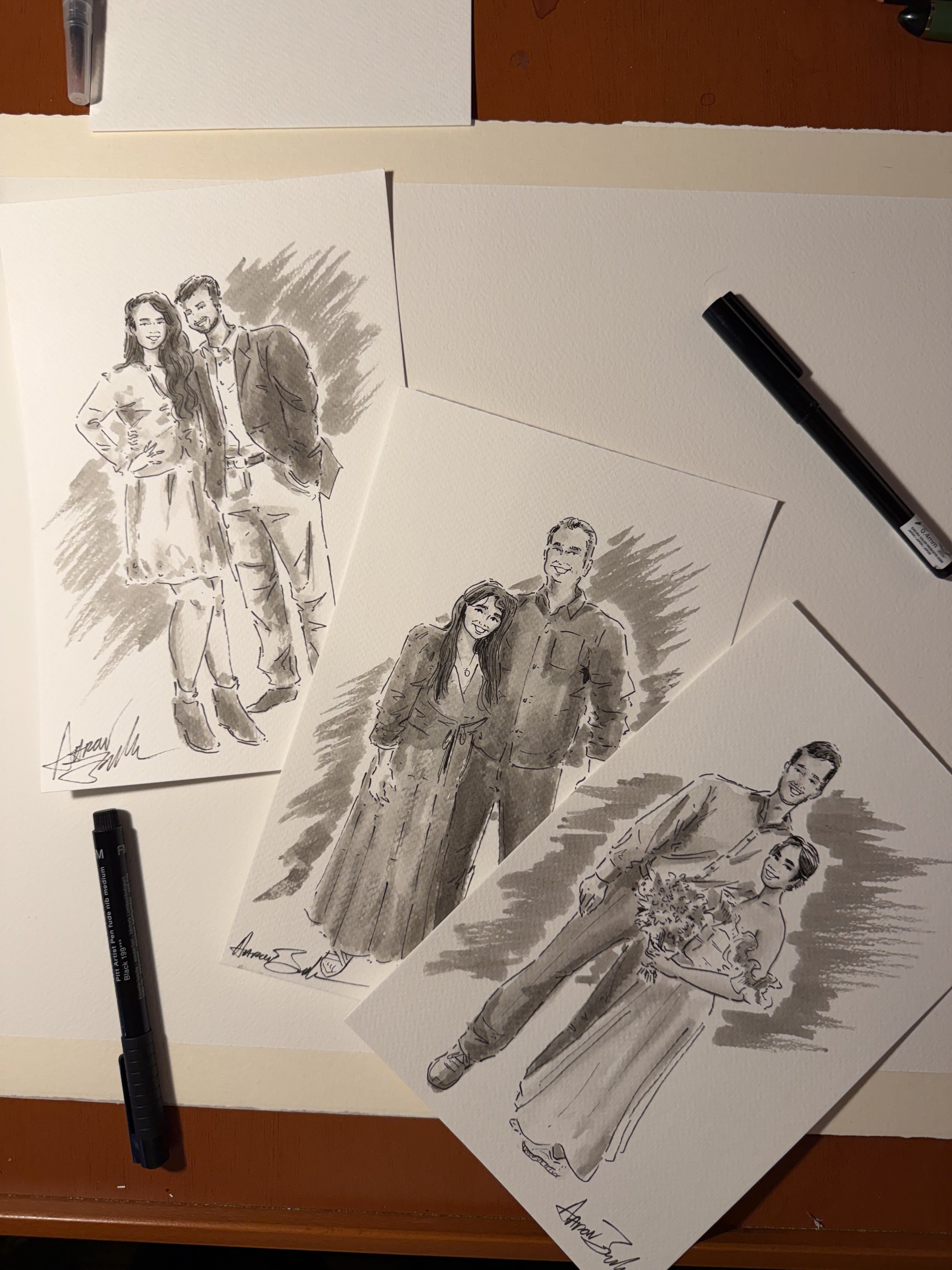 Weddings, Corporate functions, Storefront Pop-ups, or for any other event, Aaron creates charming portrait drawings that guests or attendees have as keepsakes and will always remember.